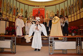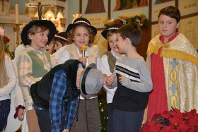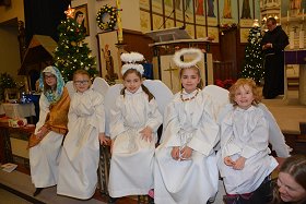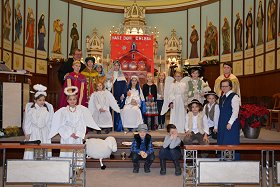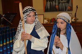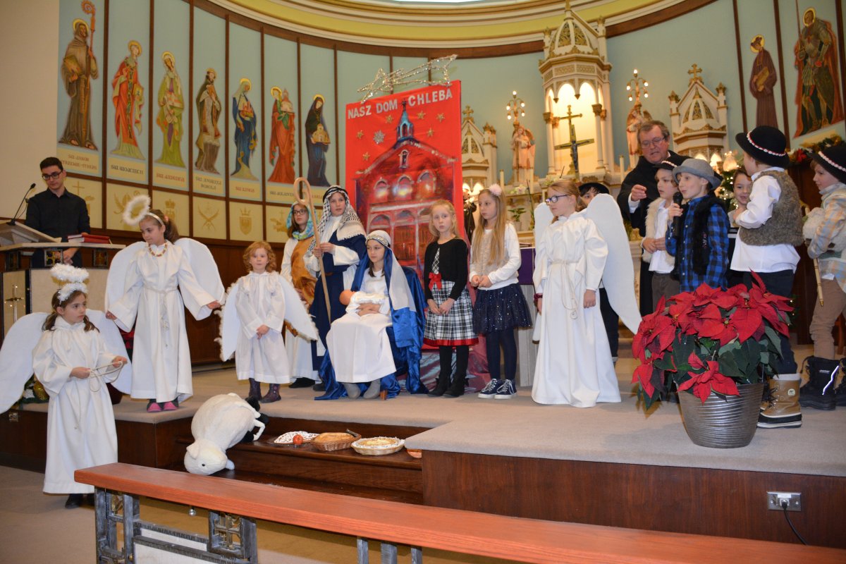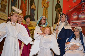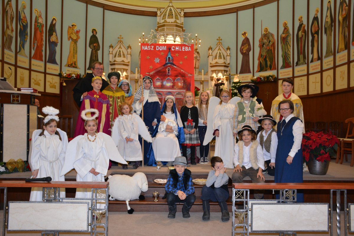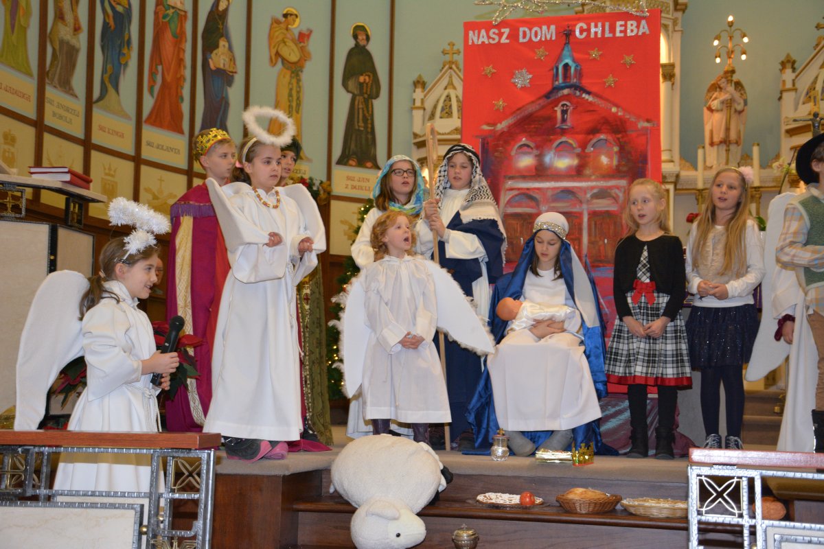 tradycyjne jasełka w których udział wzięły dzieci i młodzieży z Parafii